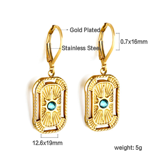 Wholesale 18K Gold Sun Ray Pattern Turquoise Hoop Earrings