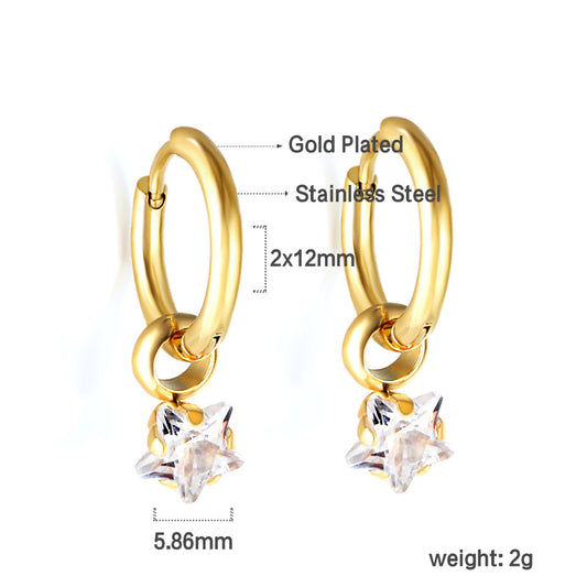 Wholesale 18K Gold Star - shaped Clear Gem Hoop Earrings