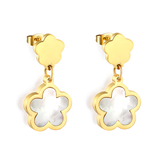 Wholesale 18K gold peach blossom + hollow peach blossom + peach blossom with white shell accessories earrings multiple colors