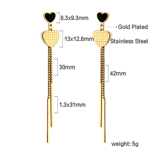 Wholesale 18K Gold Black - Heart Accent Gold - Heart Chain Drop Earrings Stylish Design