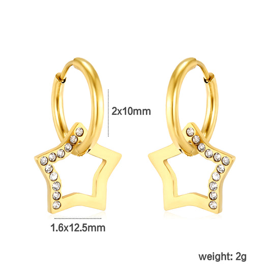 Wholesale 18K Gold Plated Star Drop Earrings Openwork Diamond Accent Celestial Luxury