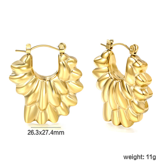 Wholesale Stainless Steel Small Scallop + Large Scallop with Textured Face Earrings