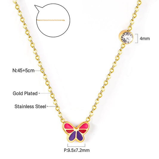 Wholesale Stainless Steel Gold Tone Fine Chain Necklace Colorful Dots Playful Pop
