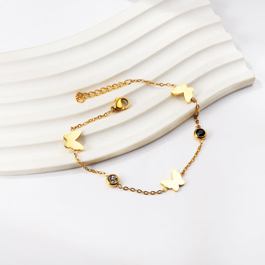Wholesale 18K Gold Plated Butterfly Charm Bracelet with Diamond Accents