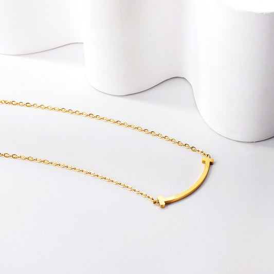 Wholesale 18K Gold Curved Bar Pendant Necklace Fluid Design