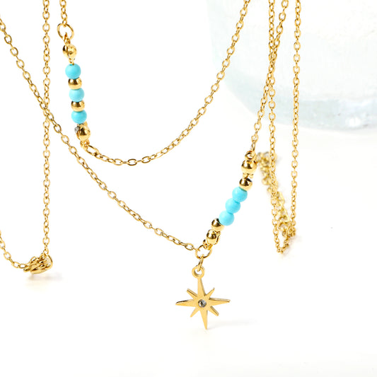 Wholesale Double layer Star and Blue Bead Necklace Fresh Sweet Style
