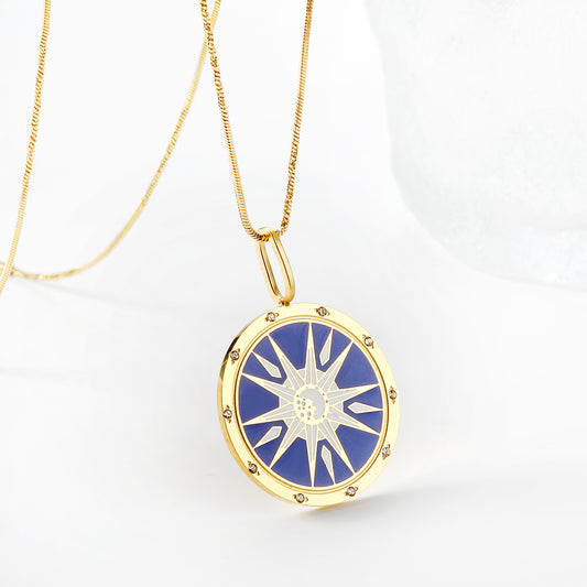 Wholesale Stainless Steel Blue Turquoise Sun Pendant Necklace