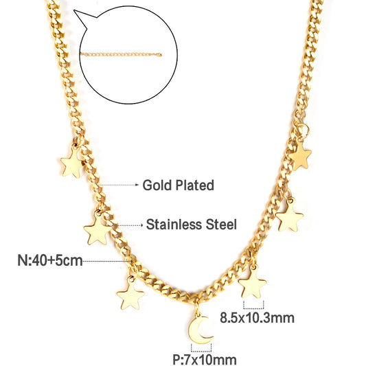 Wholesale 18K Gold Star & Moon Pendants Necklace