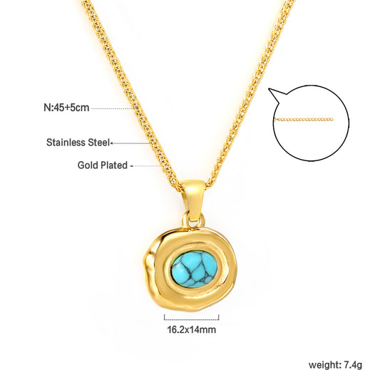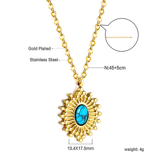 Wholesale Stainless Steel Blue Turquoise Oval Pendant Necklace