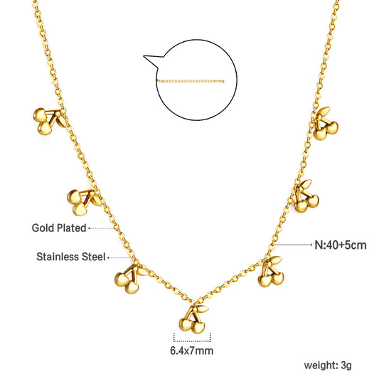 Wholesale Cherry Luxury Art Necklace 18k Gold Plated Stainless Steel