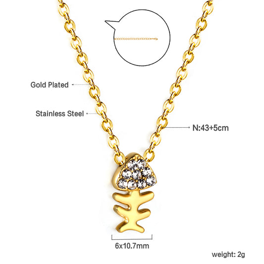 Bulk Stainless Steel Gold Tone Heart with Zircon Necklace Romantic Flair