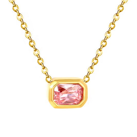 Wholesale 18K Gold Plated Square Gemstone Necklace Multi-Color Options Precision Cut Pendant Festival Luxury