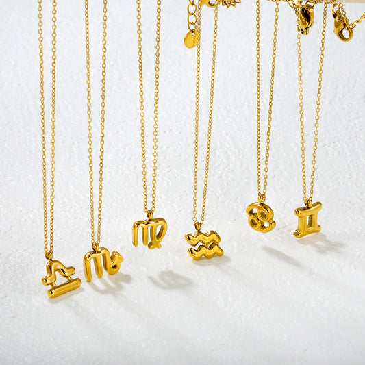 Wholesale 18K Gold Plated Zodiac Sign Necklace Astrological Symbol Pendant Delicate Chain Celestial Luxury