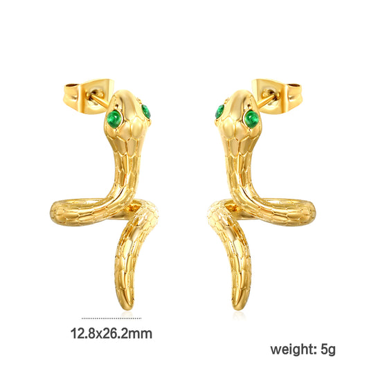 Gold snake with 2 green diamonds stud earrings jewelry supplier