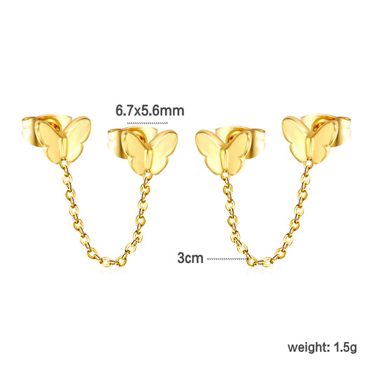 Gold Butterfly + Cross Chain Stud Earrings Jewelry Suppliers