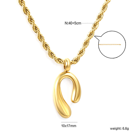 Wholesale stainless steel long and short n shape pendant necklace twist chain
