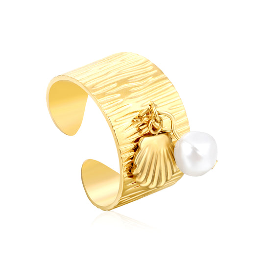 Wholesale Waterproof PVD Irregular Pearl Open Ring with Charm (Heart/Butterfly)