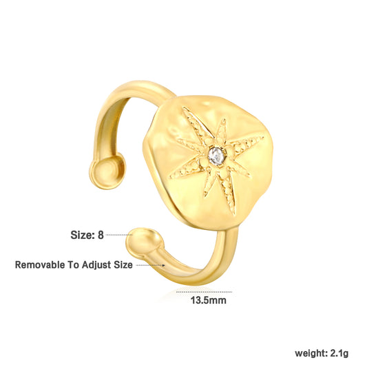 Bulk Waterproof PVD Gold 13.5mm Eight-Pointed Star CZ Open Ring