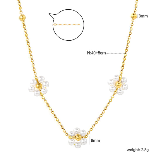 Wholesale Stainless Steel Gold Tone Flower with Pearl Pendant Necklace Floral Elegance