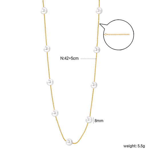 Wholesale Stainless Steel 7pcs 8mm White Pearls Bead Chain Necklace