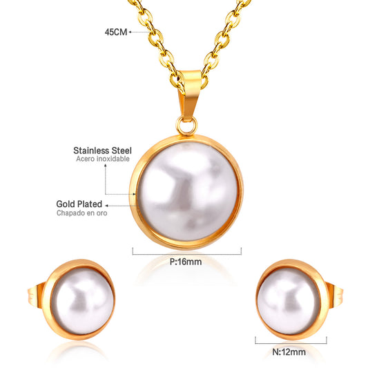 Bulk Stainless Steel Pearl Jewelry Set Textured Luxury