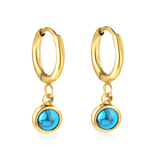Wholesale 18K Gold Round Pearl and Turquoise Hoop Earrings Exquisite Design