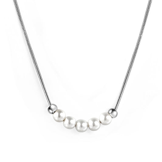 Wholesale Stainless Steel 5 White Pearls 2 Steel Beads Necklace