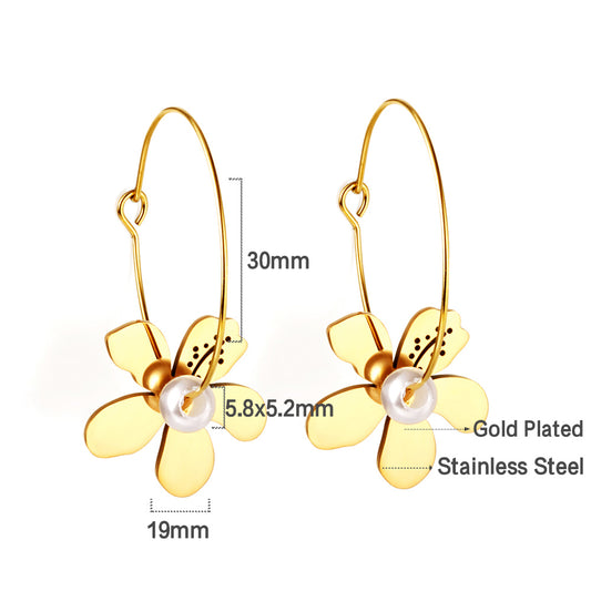 Wholesale 18K Gold Flower - pearl Drop Earrings Elegant Charm