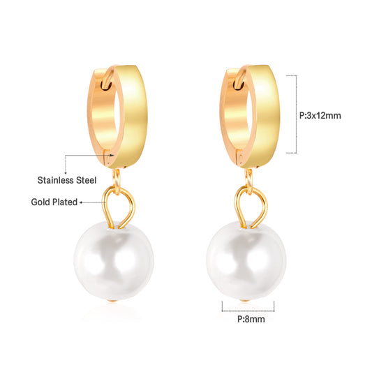 Wholesale Stainless Steel Circle with White Pearl Hoop Earrings