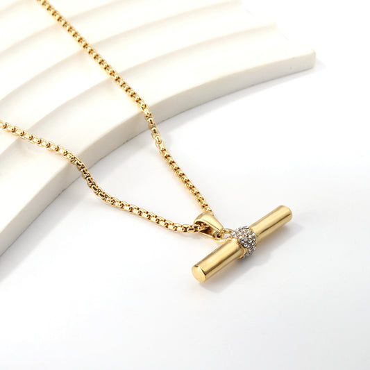 Wholesale Stainless Steel Gold Tone Bar Pendant with Zircon Modern