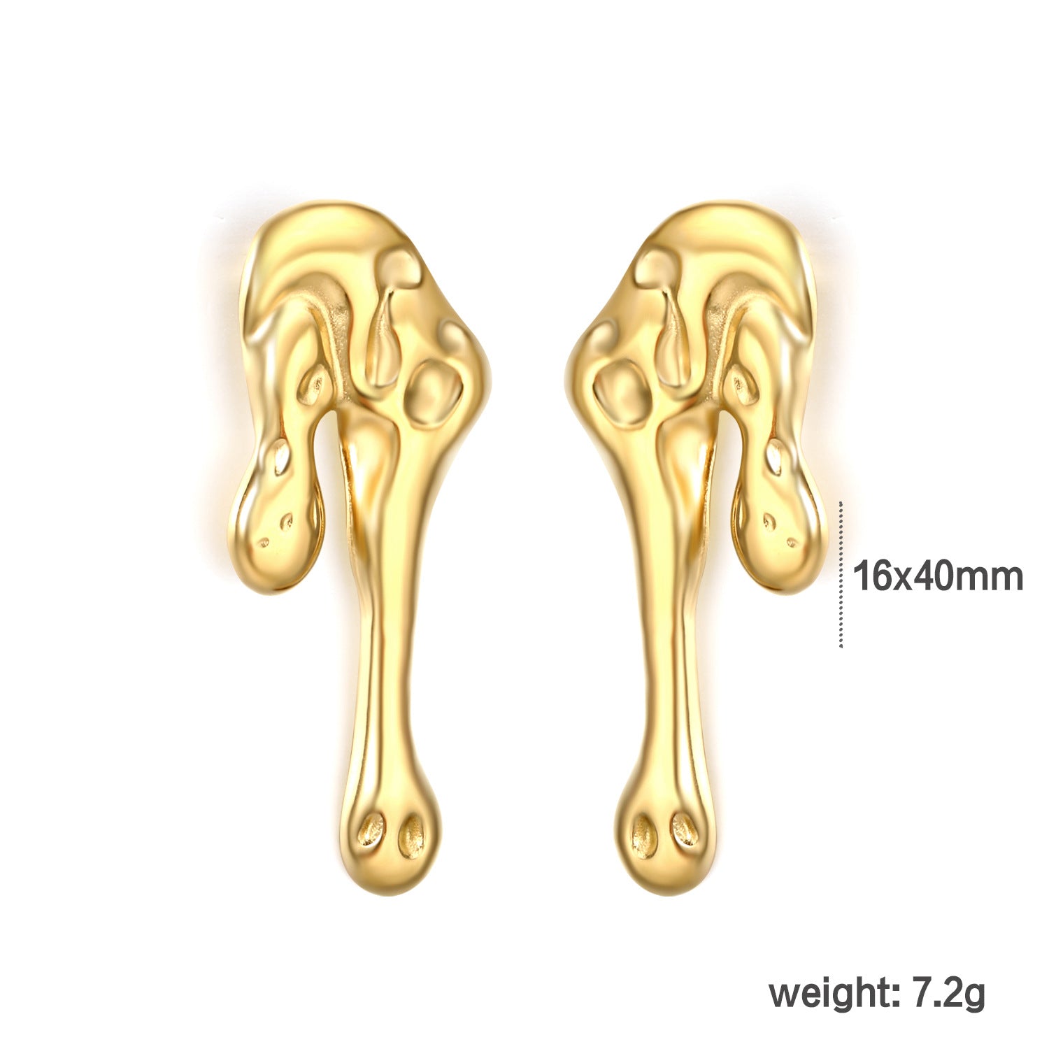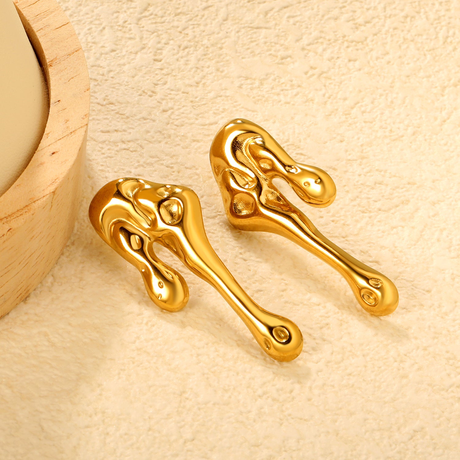 Elevate your everyday look with these striking Aesthetic Stainless Steel Liquid Studs. Featuring a unique molten metal design, these earrings capture fluid movement frozen in time—a modern take on contemporary jewelry. Crafted from durable 304L stainless steel with 18K gold PVD plating, they resist tarnishing and maintain their lustrous finish through daily wear. The precise 0.5um plating thickness ensures longevity, while the lightweight 7.2g construction keeps them comfortable for all-day styling. Perfect for those seeking statement pieces that blend artistic design with reliable materials. Ideal as a gift or personal indulgence for the aesthetically minded.