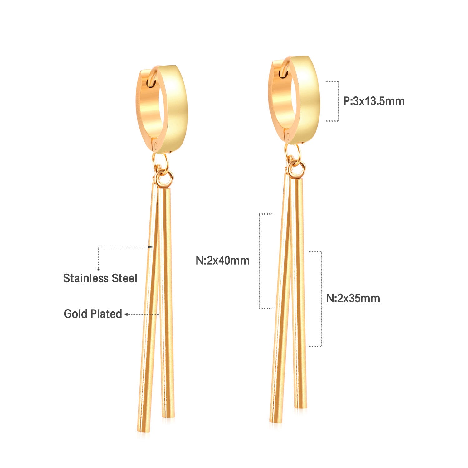 Bulk 18K Gold Long Bar Stud Earrings Hypoallergenic