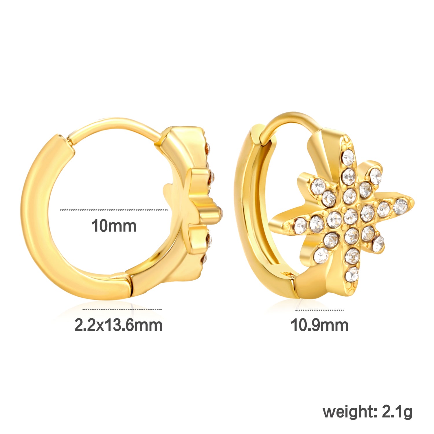 Bulk 18K Gold Plated Celestial Octagram Crystal Hoop Earrings