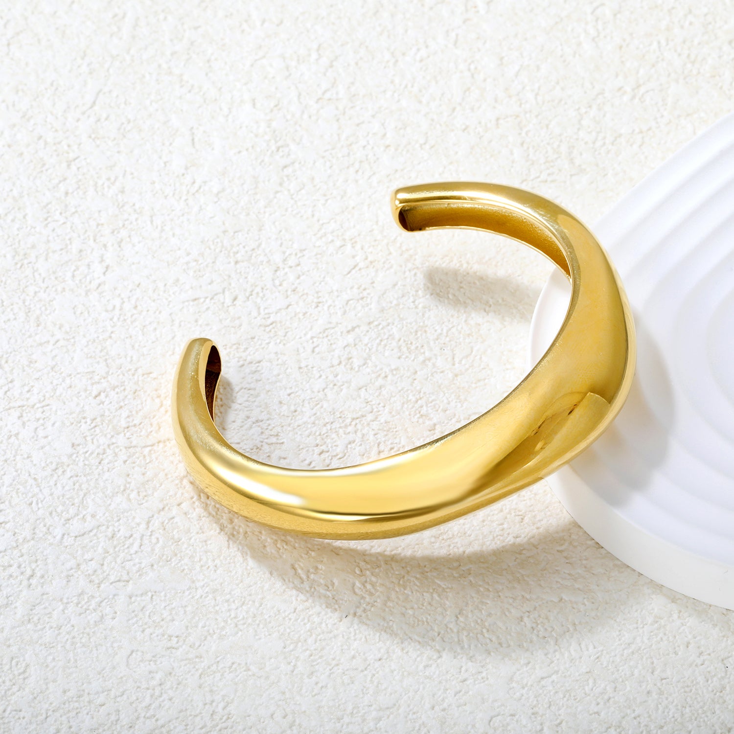 18K gold plated irregular C-shaped bangle gleams with smooth polish, modern and striking. Perfect for brunch dates, it adds curated flair to casual style.
