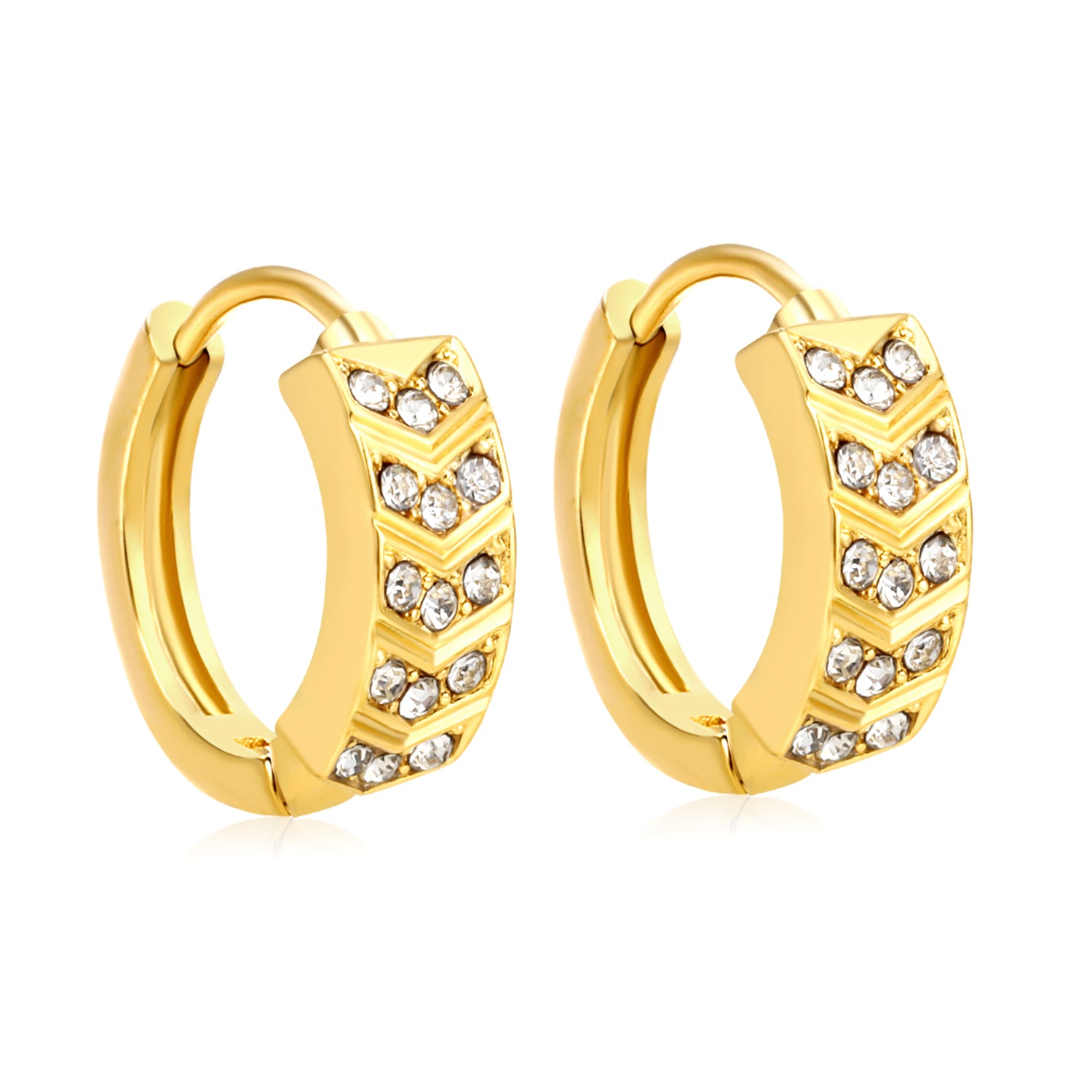 18K gold plated hexagon crystal hoops angle with modern precision, sleek and vibrant. Ideal for art gallery visits, they mirror geometric artistry.