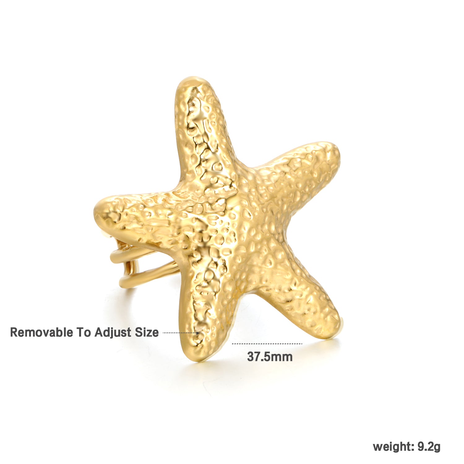18K gold plated single starfish open ring glows with polished texture, simple and charming. Perfect for daily wear, it adds subtle oceanic flair.