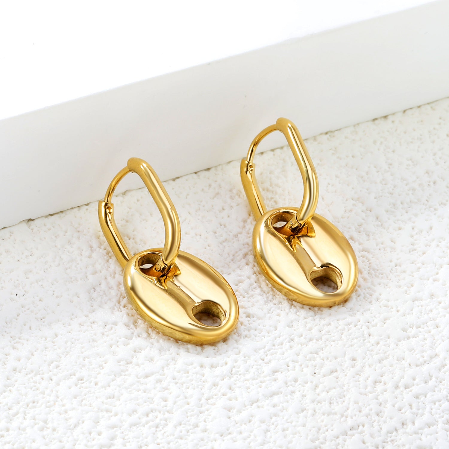Elevate your jewelry collection with these durable PVD gold charm hoop earrings, engineered for everyday wear. The waterproof PVD coating resists tarnishing and fading, maintaining a lustrous finish through moisture exposure and daily activities. Versatile charm-compatible design allows for personalized styling, while the secure hoop construction ensures reliable wear. Ideal for wholesale buyers seeking quality pieces that balance affordability with longevity. Perfect for customers who demand jewelry that performs as beautifully as it looks.