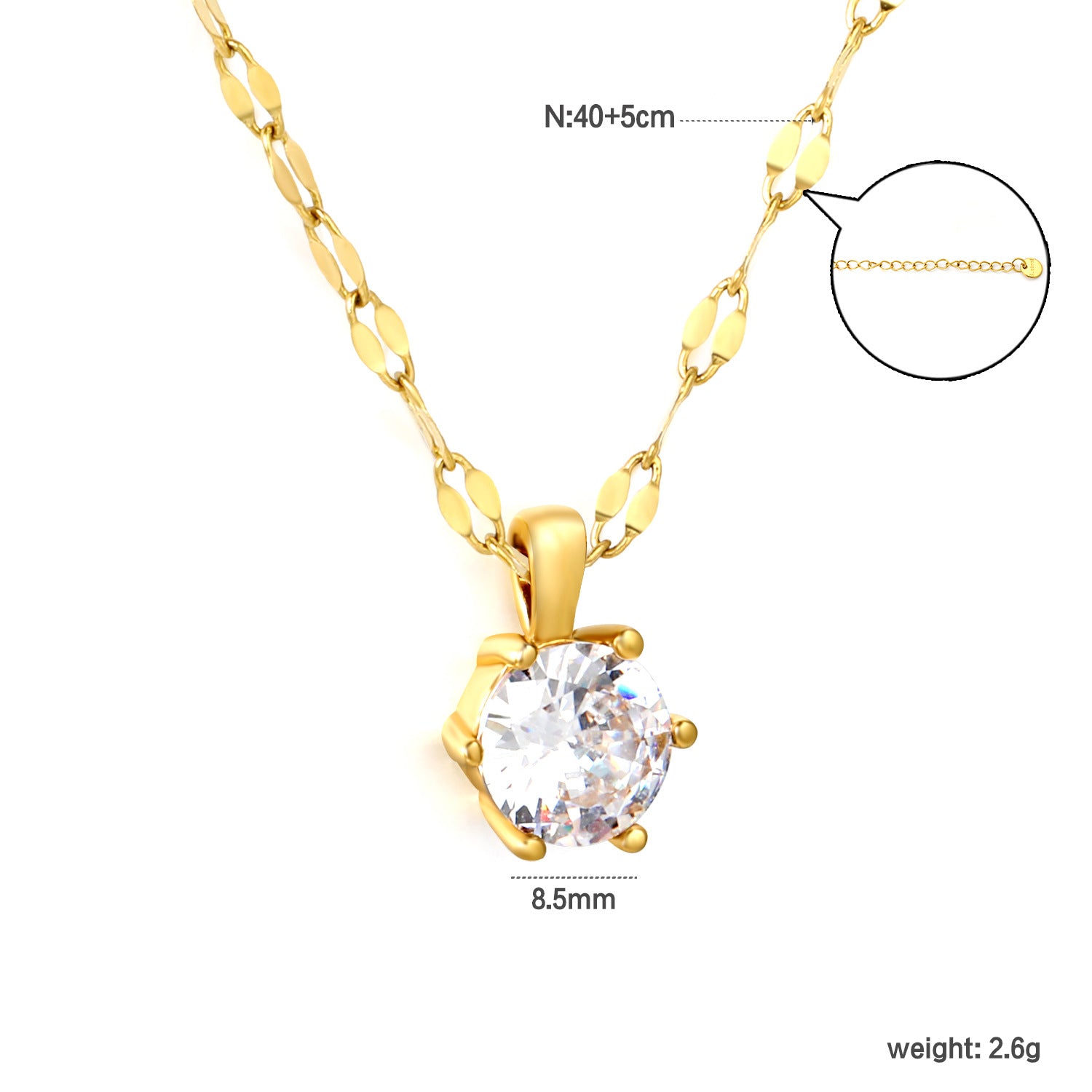 Bulk PVD Gold Solitaire Zircon Oval Link Dainty Necklace