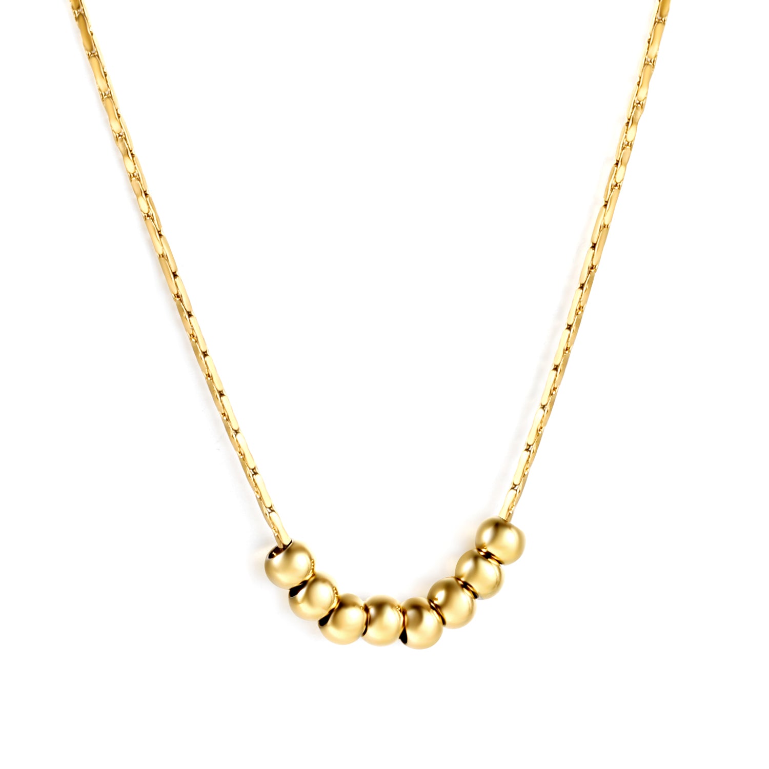 Durable stainless steel necklace with elegant gold-toned bead chain design. Tarnish-resistant and versatile, this classic piece complements both everyday and special occasion outfits.