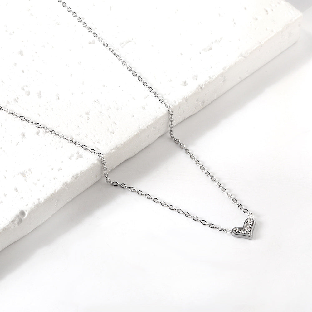 Durable stainless steel necklace with a gold-tone heart pendant featuring sparkling zircon accents. Combines romance with everyday wearability.