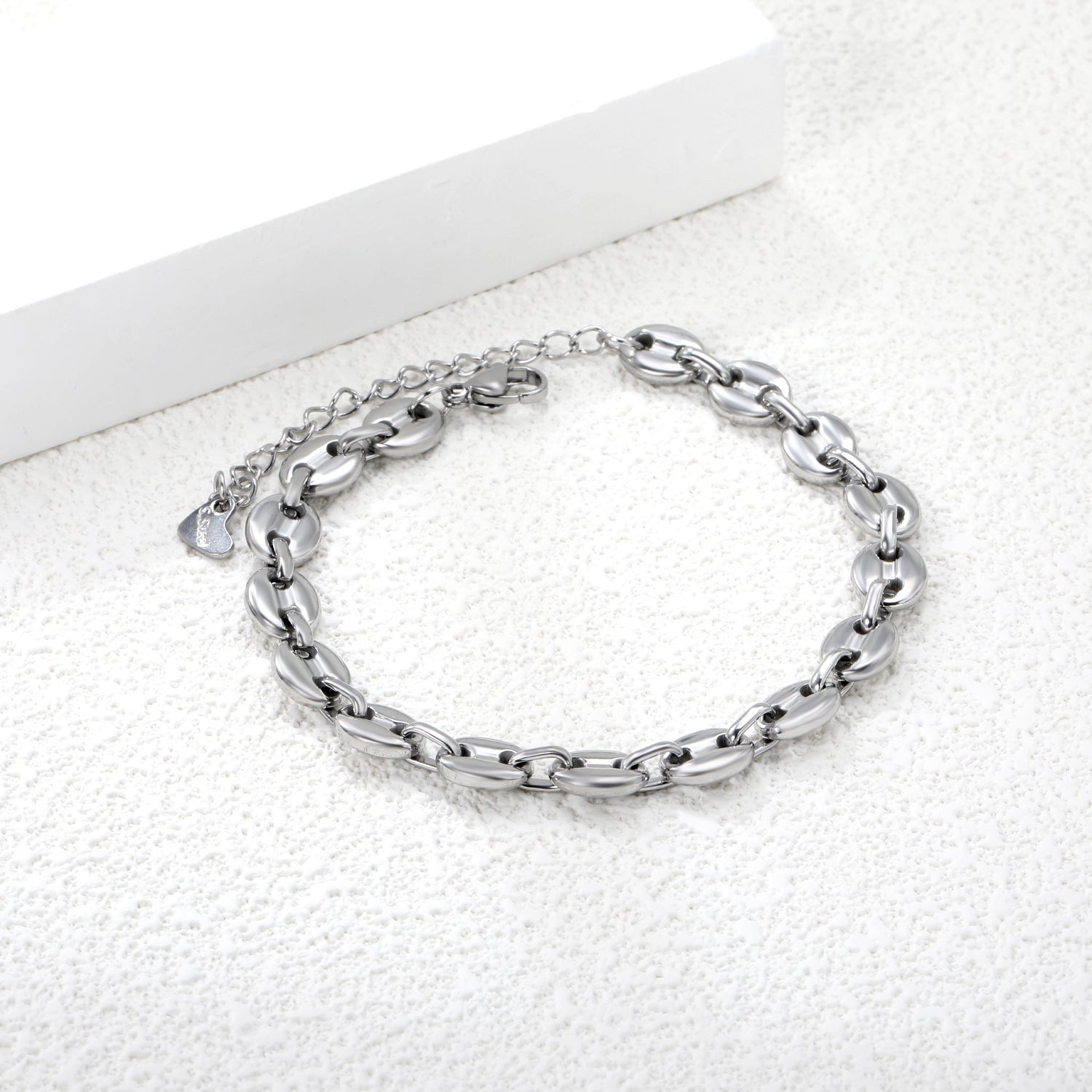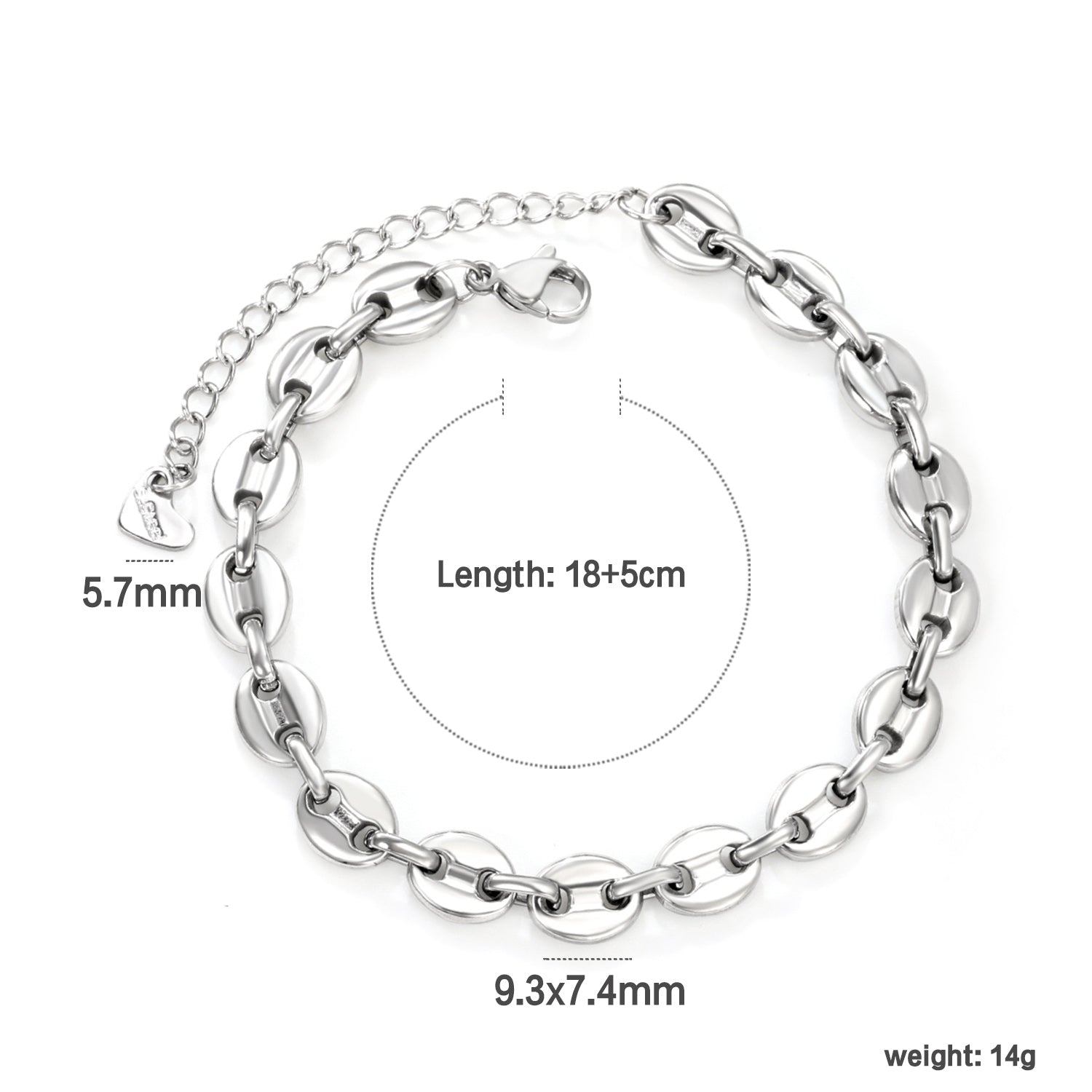 Bulk Stainless Steel Modern Linked Pig Nose Heart Tag Bracelet