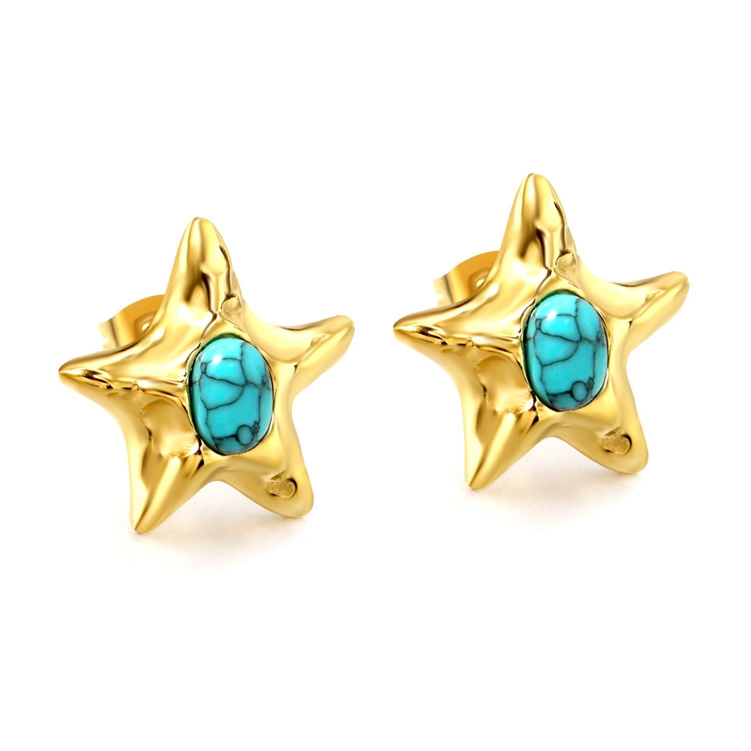 These star-shaped turquoise earrings showcase a unique design that adds a playful yet elegant touch to your look. Crafted for comfort and style, they are perfect for brightening up any outfit with a pop of color and distinctive charm. Ideal for those who appreciate standout accessories with a creative flair.