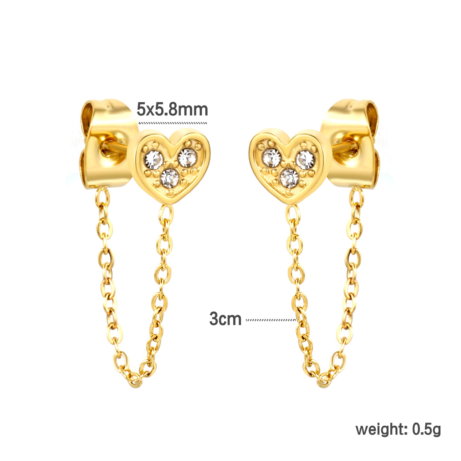 Golden heart with white zirconia + cross link stud earrings Jewelry Supplier