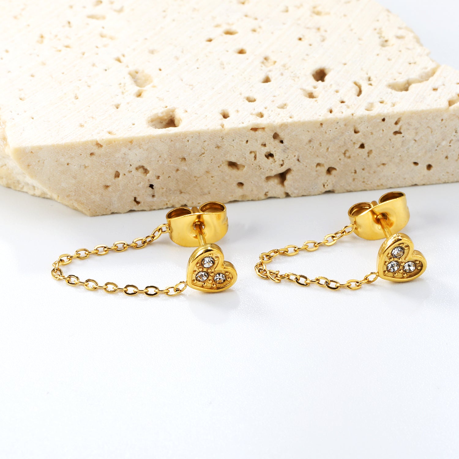 These golden heart stud earrings adorned with white zirconia stones are paired with elegant cross link studs, creating a charming and versatile set. The sparkling zirconia adds a touch of brilliance, while the classic shapes make them perfect for everyday wear or special occasions. Comfortable and stylish, they enhance any jewelry collection with timeless appeal.