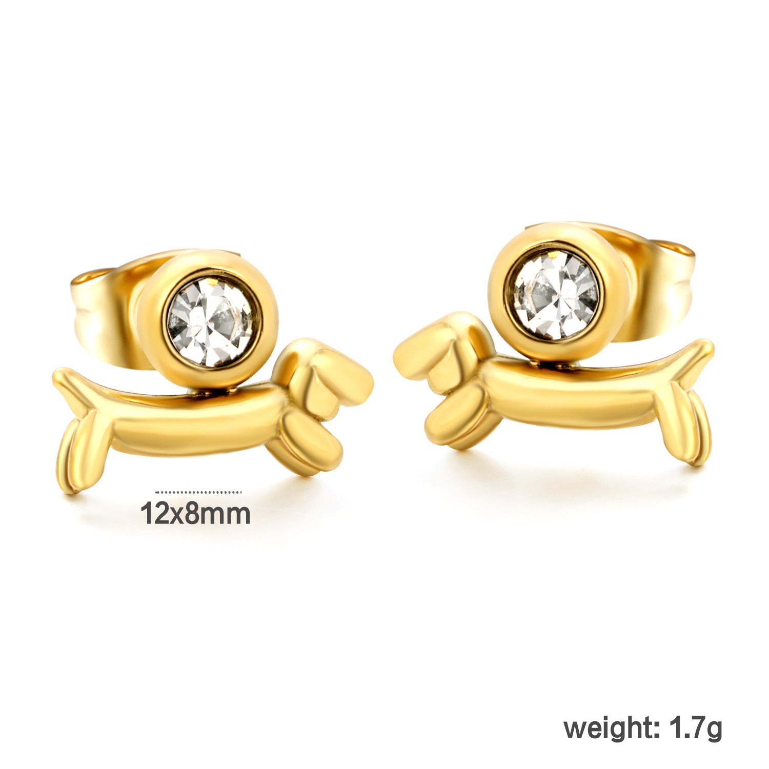 Sparkly Stainless Steel Dog Studs | Dachshund Lover Gold Jewelry