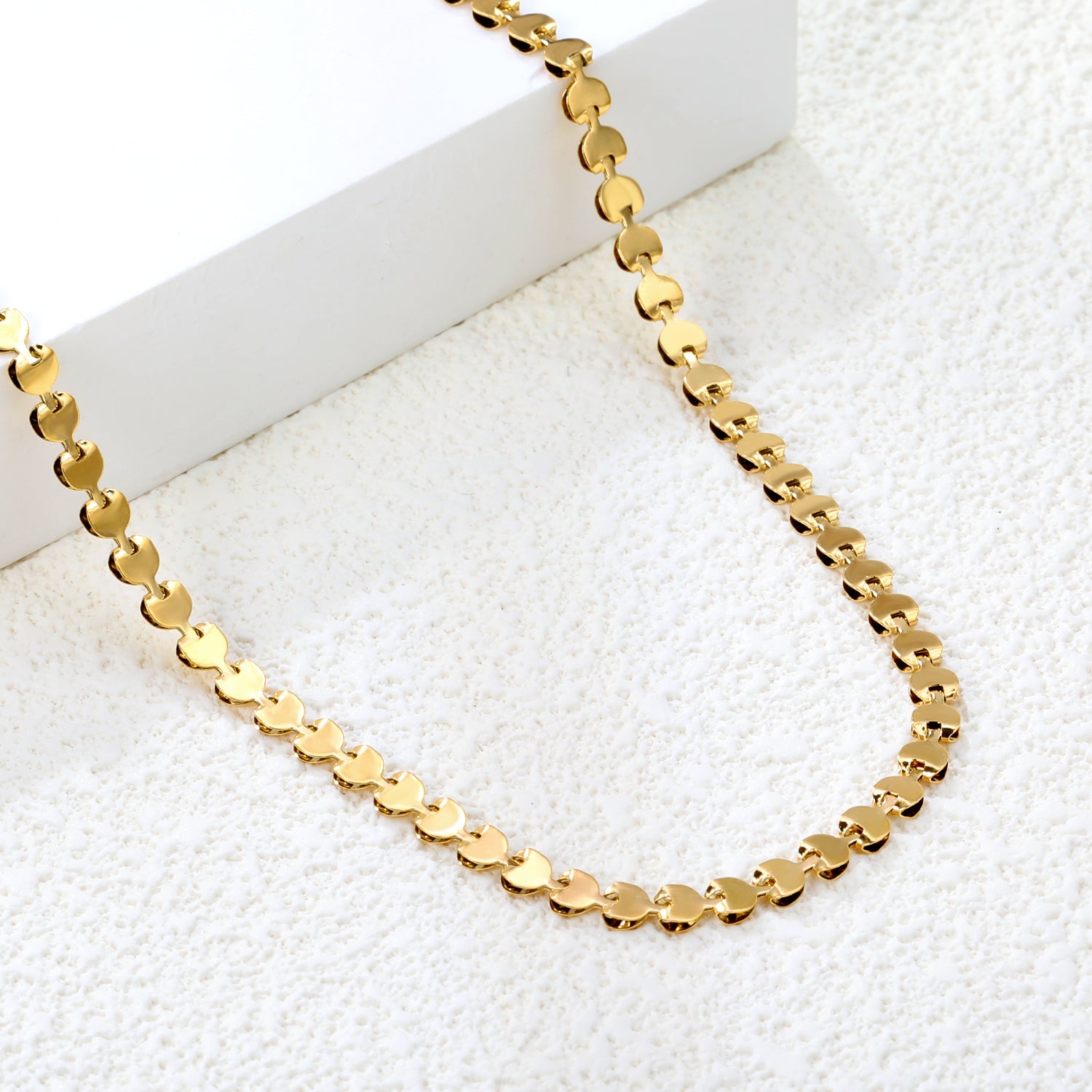 Stainless Steel Gold Interlocking Heart Tail Chain + Heart-Shaped Tag Necklace Jewelry Supplier