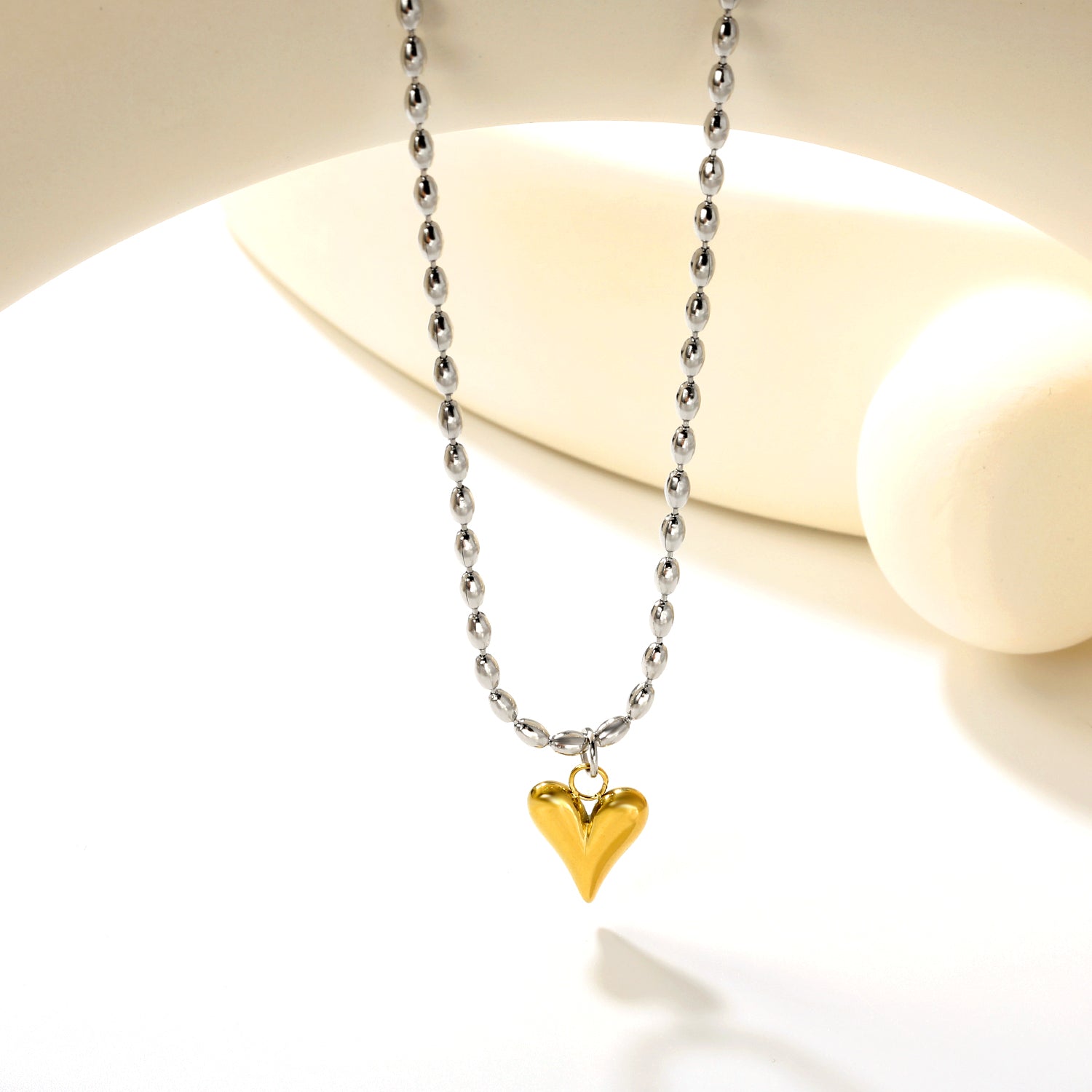 Stainless Steel Heart Pendant & Rice Grain Bead Chain Necklace Jewelry Supplier