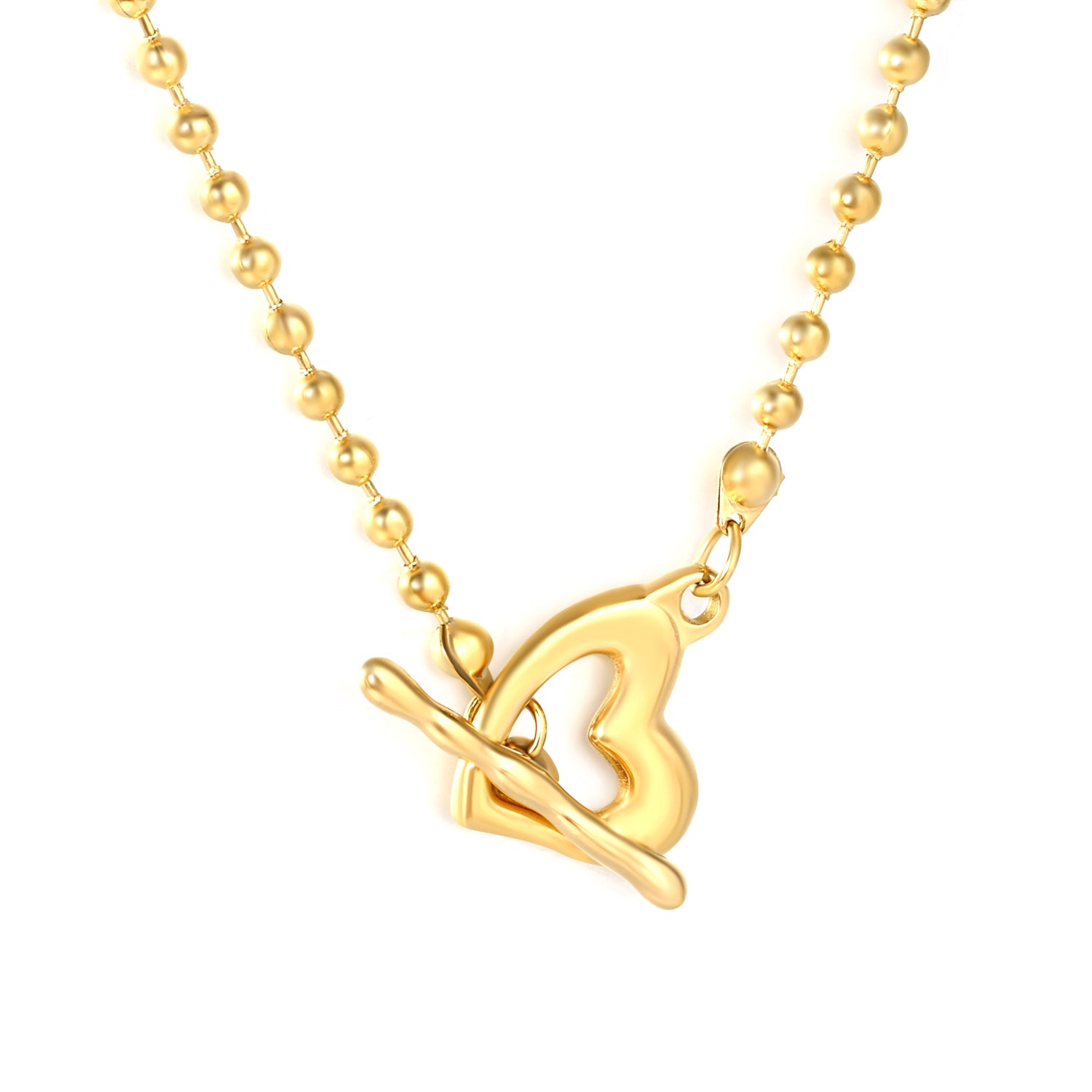 This necklace features a combined heart and butterfly pendant with a smooth polished surface and no additional decorations. Crafted from PVD Gold Plated Stainless Steel, this Waterproof and Hypoallergenic piece is perfect for sweet daily, versatile casual styles, offering a gentle and lovely look.