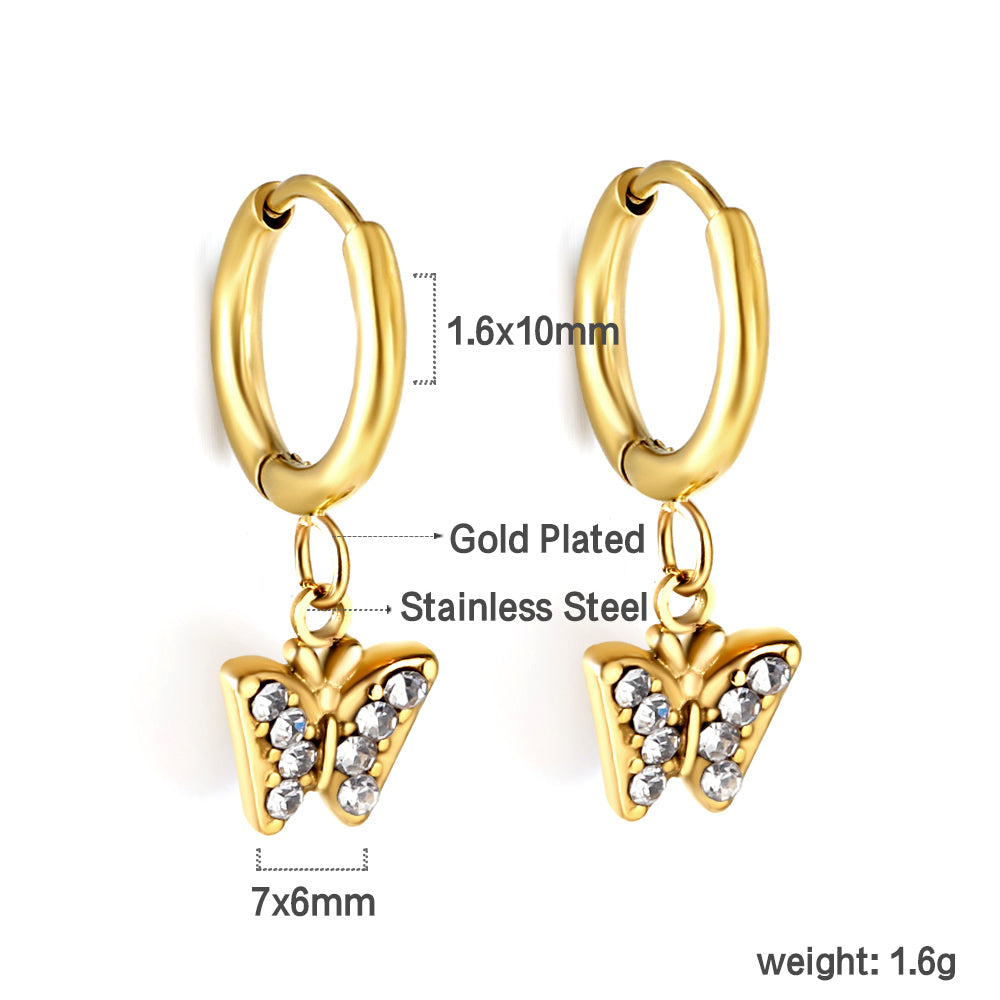 These 18K gold circle earrings with butterfly and white diamond details offer elegant style and lasting quality, ideal for wholesale buyers.