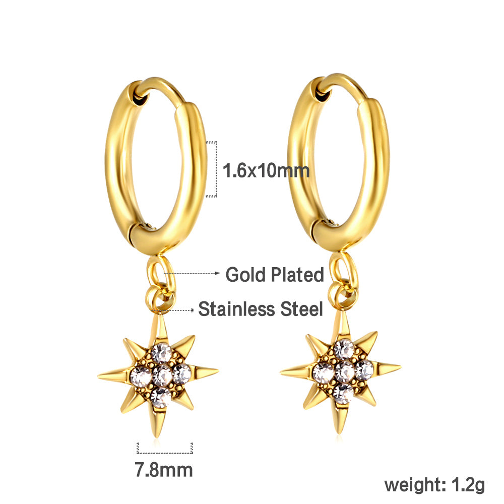Wholesale 18K Gold Circles with Lucky Star White Diamond Hoop Earrings